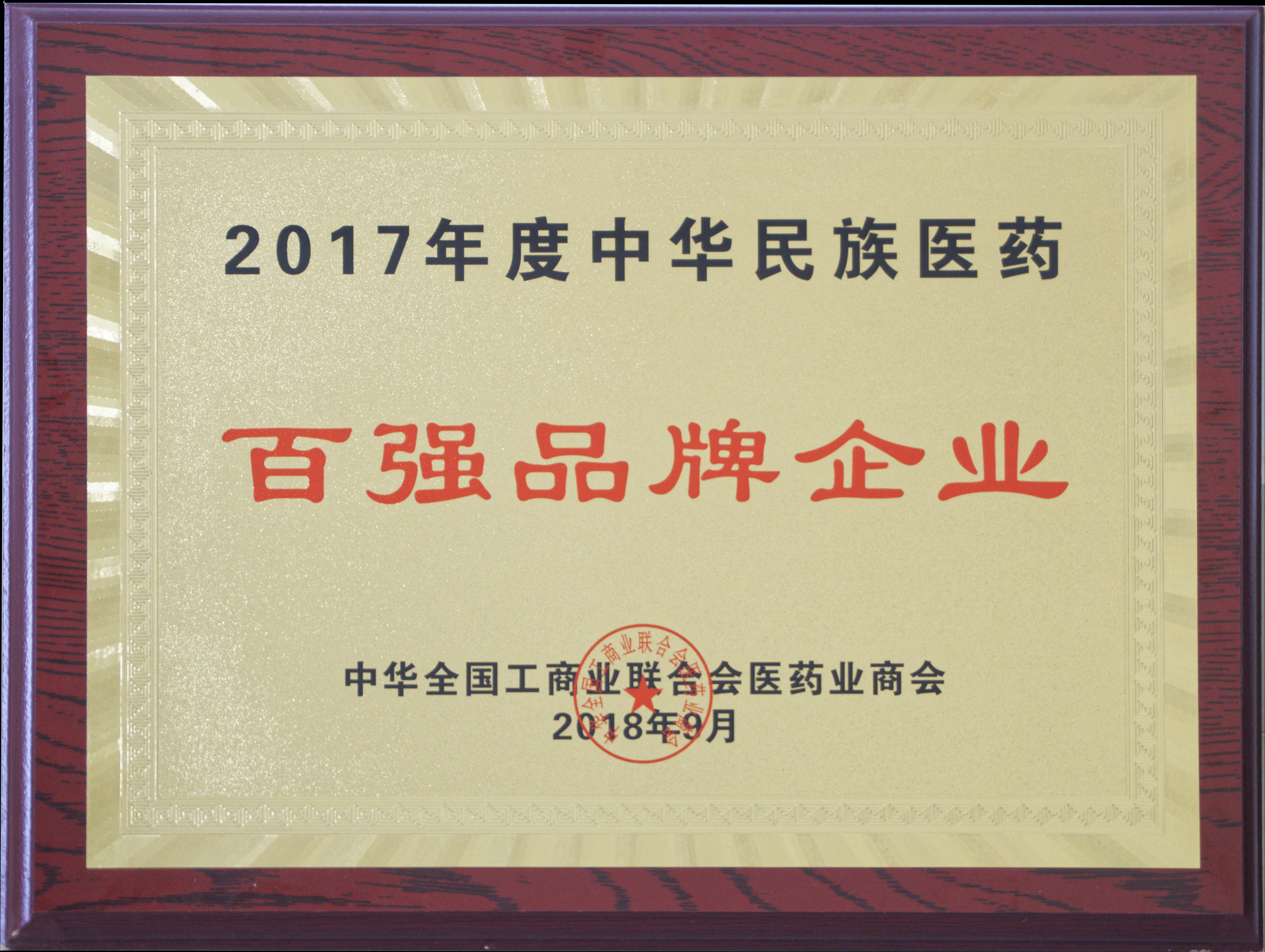 2017年度評(píng)為中國民族醫(yī)藥百強(qiáng)品牌企業(yè)