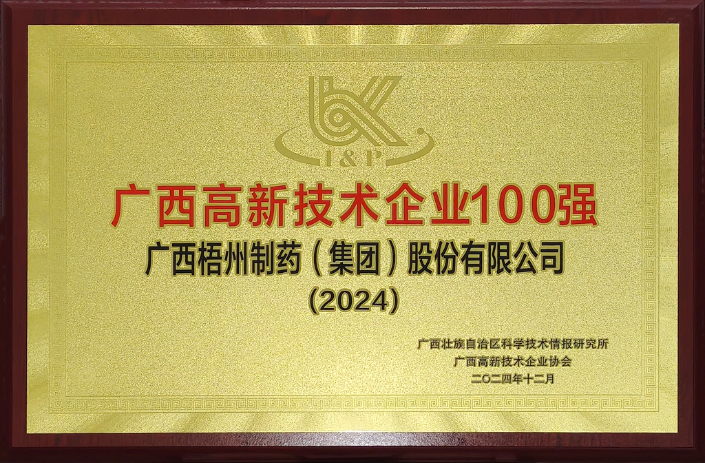 梧州制藥獲評2024年廣西高新技術(shù)企業(yè)100強(qiáng)