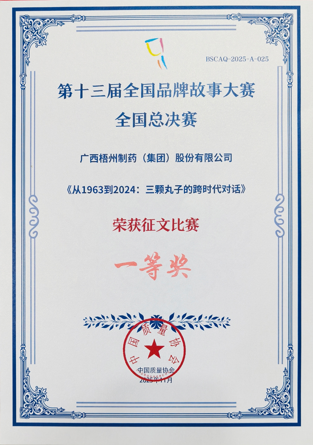 廣西梧州制藥(集團(tuán))股份有限公司征文(三顆丸子的跨時代對話)獲第十三屆全國品牌故事大賽全國總決賽征文比賽一等獎