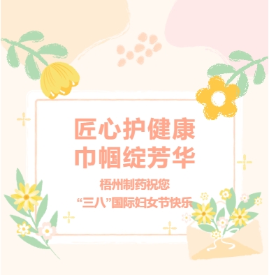 匠心護(hù)健康巾幗綻芳華梧州制藥祝您“三八”國(guó)際婦女節(jié)快樂(lè)春風(fēng)送暖,芳華綻放在第116個(gè)“三八” 國(guó)際婦女節(jié)到來(lái)之際梧州制藥向每一位了不起的她致以最誠(chéng)摯的祝福與敬意!祝全體女性朋友“三八”國(guó)際婦女節(jié)快樂(lè)!END圖文|