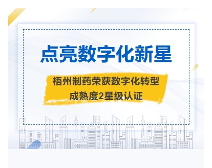 點(diǎn)亮數(shù)字化新星梧州制藥榮獲數(shù)字化轉(zhuǎn)型成熟度2星級認(rèn)證摘要近日,數(shù)字化轉(zhuǎn)型貫標(biāo)工作委員會(huì)公布第十九批數(shù)字化轉(zhuǎn)型貫標(biāo)星級評估結(jié)果,廣西梧州制藥(集團(tuán))股份有限公司憑借扎實(shí)的轉(zhuǎn)型實(shí)踐與顯著成效,成功獲評數(shù)字